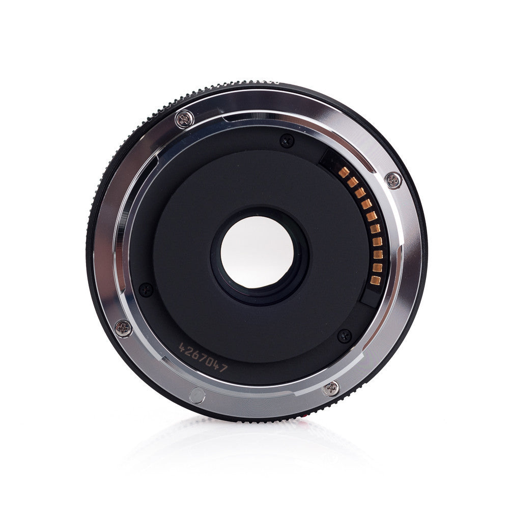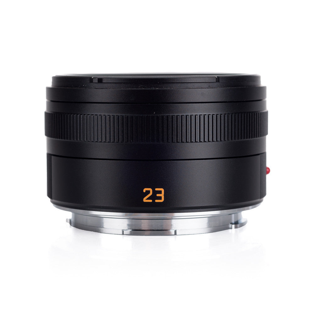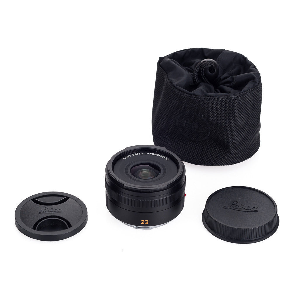 The 23 mm Summicron-T lens, the front and rear protective caps and lens pouch.